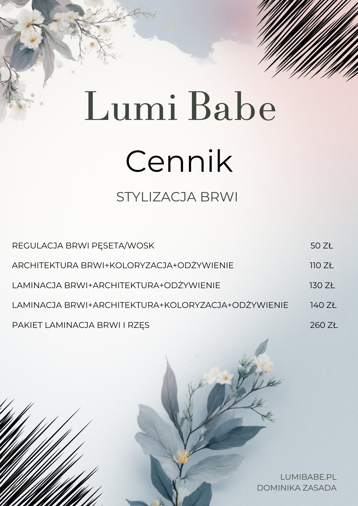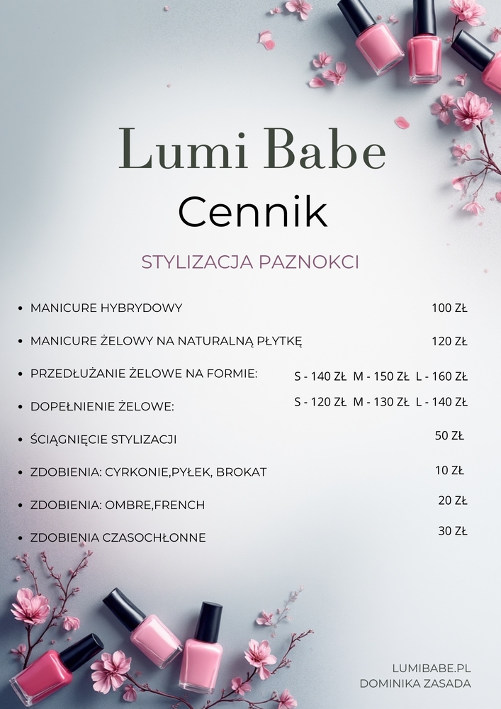 Z tej strony Dominika, zapraszam Cię do mojego nowo otwartego salonu Lumi Babe. Dzięki wielu szkoleniom i wysokiej jakości akcesoriom pomogę uzyskać Ci wspaniały efekt na Twoich brwiach, rzęsach i paznokciach.
